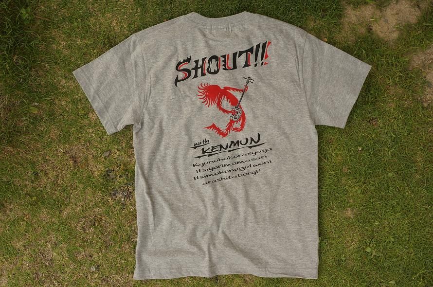 「Amamin Specter KENMUN」奄美に伝わる伝説の妖怪ケンムンが三線を弾く姿を描いたアメリカンテイストのヘビーウエイトTシャツ。 PST-SHOUT-KENMUN-01